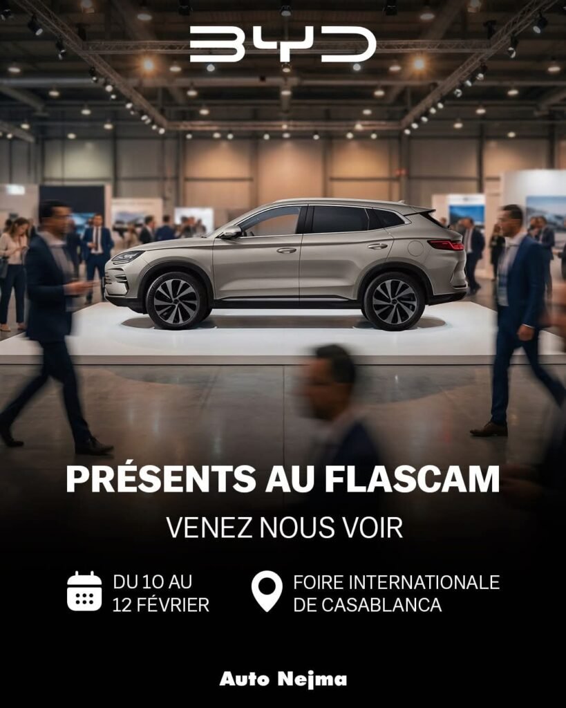 الدار البيضاء – 11 فبراير 2026 – في إطار الدورة الـ14 من Solaire Expo Maroc، الذي يُقام حاليًا في المعرض الدولي بالدار البيضاء (10-12 فبراير)، يحتل التنقل الأخضر مكانة بارزة، حيث خُصص نحو نصف مساحة المعرض للسيارات الكهربائية والهجينة. ومن بين العارضين الرئيسيين، تبرز BYD، الشركة الصينية الرائدة عالميًا في السيارات ذات الطاقة الجديدة (NEV)، كلاعب محوري يجسد التكامل بين الطاقة الشمسية والتنقل الكهربائي.
