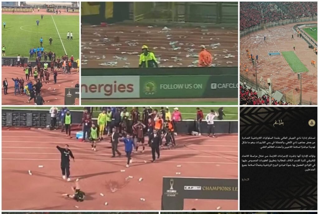 استنكرت إدارة نادي الجيش الملكي بشدة السلوكيات اللارياضية الصادرة عن بعض جماهير نادي الأهلي المصري، خلال المباراة التي جمعت بين الفريقين بملعب القاهرة الدولي، والمتمثلة في رمي القارورات، وهو ما شكل تهديدًا مباشرًا لسلامة اللاعبين وأعضاء الطاقم التقني.
