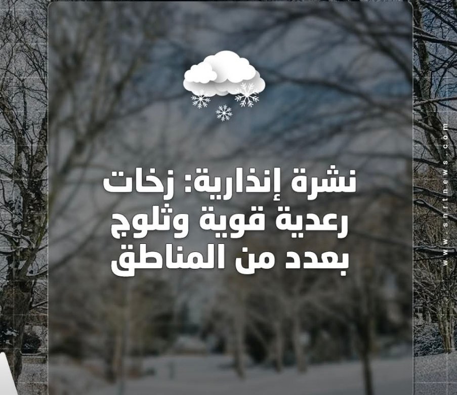 نشرة إنذارية جديدة وزخات رعدية قوية