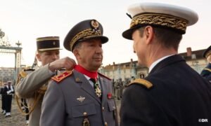الوسط تم اليوم الاربعاء بباريس، توشيح الفريق أول محمد بريظـ، المفتش العام للقوات المسلحة الملكية، قائد المنطقة الجنوبية، بوسام ”...